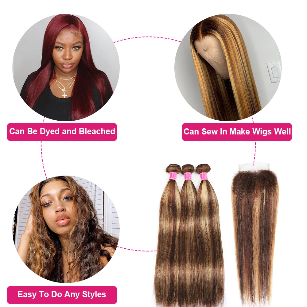 Today Only Hair Highlight Color P4 27 Kinky Curly Bundles With Lace Closure Human Virgin Hair Straight Hair Weave 3 Bundles With Closure